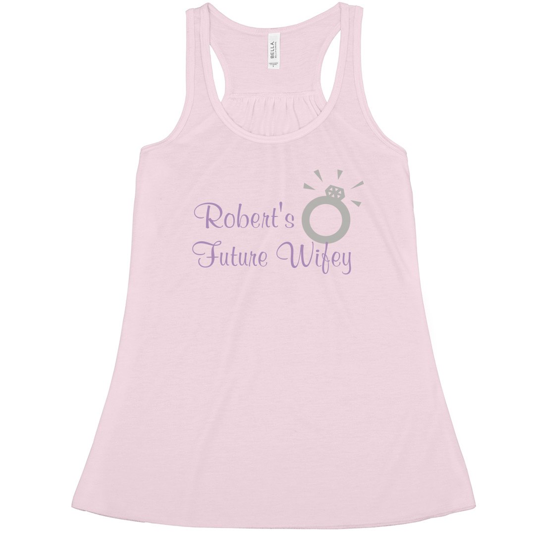 Thie "Future Wifey" with engagement ring art is perfect for any bride-to-be. Customize this design to read any name for a one of a kind tee or tank before your wedding!