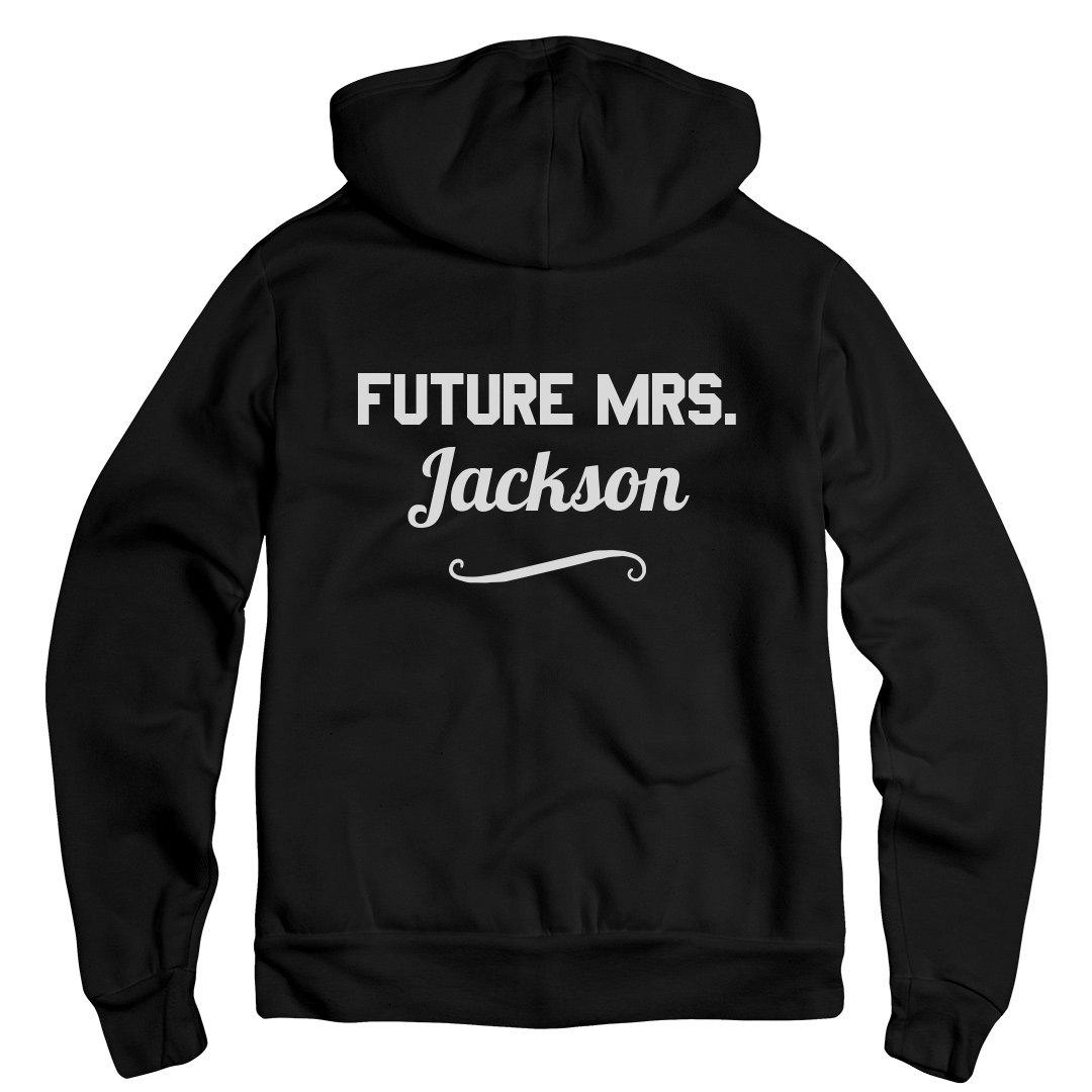 Mrs. Jackson can become any name you want! Just click the customize button. This is a fleece hoody, which means it can be paired with our fleece sweatpants, and together they make one killer sweatsuit!