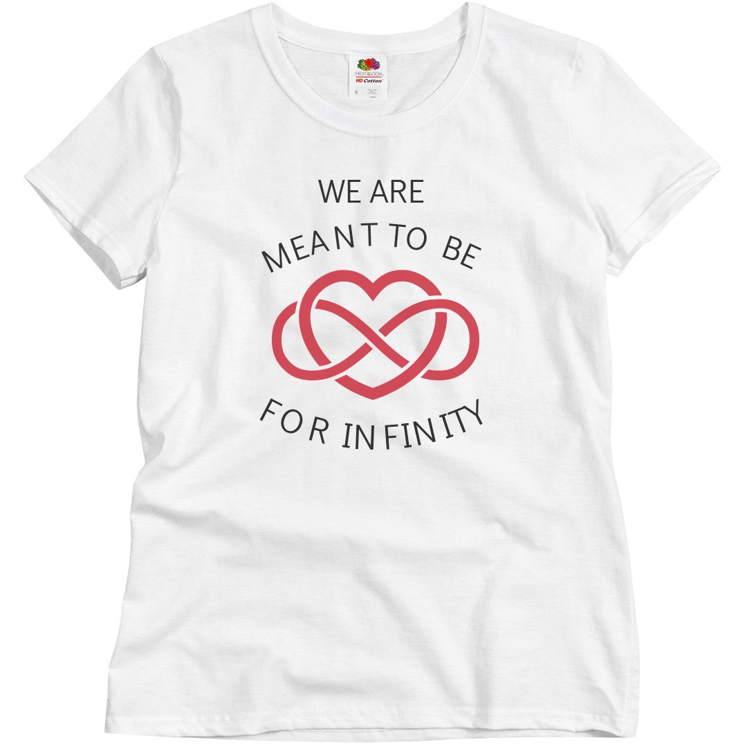 This cute artwork of a red heart surrounded by a infinity ring and states "We are meant to be for infinity" this great love quote can be exchanged on different products besides this woman's t-shirt just swap-out product