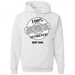 Specifically designed for the Best Man, this shirt celebrates the joy and excitement of getting ready for the big day with tongue in cheek humor. Text reads: 100% Authentic Ring Holding, Bride Toasting, Bar Hopping, Guest Seating, Cummerbund Wearing, Tux Renting, Picture Posing, Groom Supporting, Limo Renting, Bachelor Partying, MOH Escorting, Booze Buying Best Man