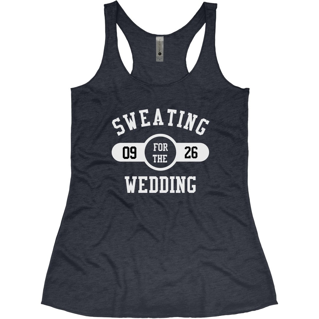 Hey bride or bachelorette! Do you have a wedding coming up? Get slim while you workout in our funny fitness tees and tanks! Sweating for the wedding!