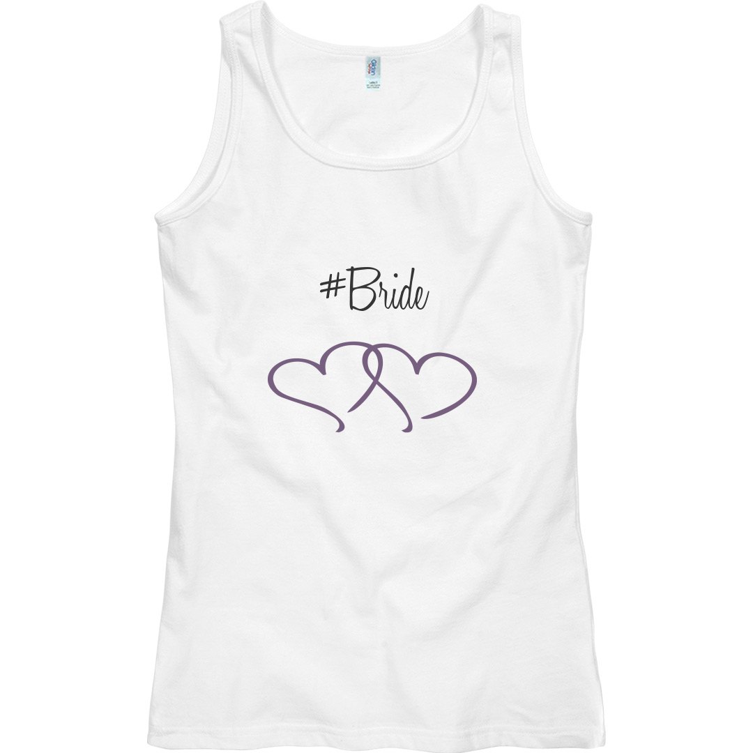 A cute design that reads: #Bride and cute purple heart outlines. A cute design perfect for the wedding shower, bachelorette party or even the wedding rehearsal and dinner.