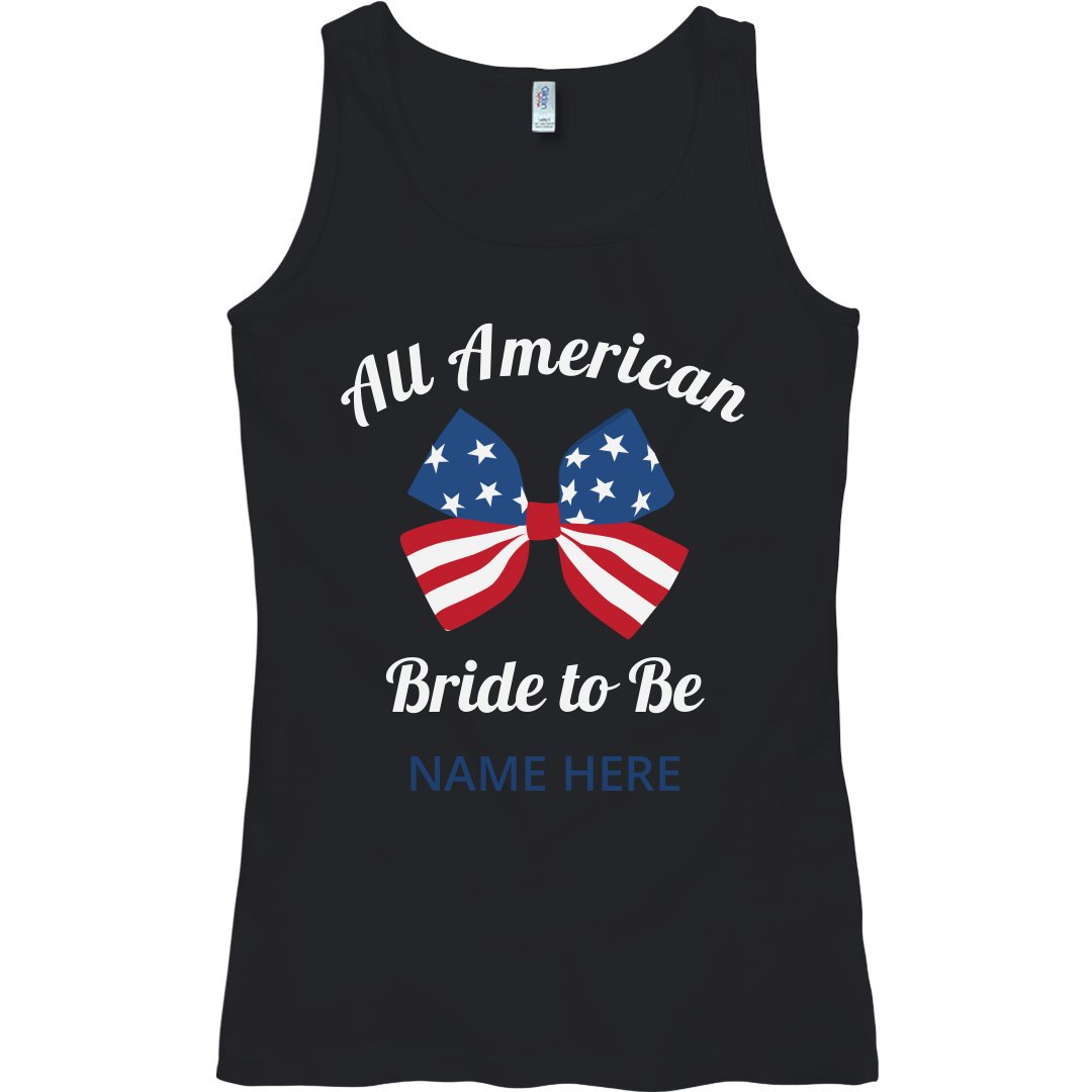 All American Bride to Be! Customize 4th of July bachelorette party tank tops for the whole bridal party. Add the brides name and be patriotic this 4th of July.