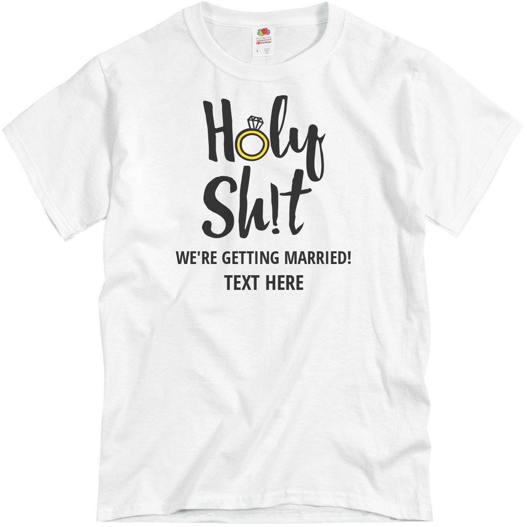 HOLY SHIT! We're getting married! Celebrate your engagement with matching couple shirts! Add your own text to this shirt and be sure to get your bride the matching tee to wear with this.