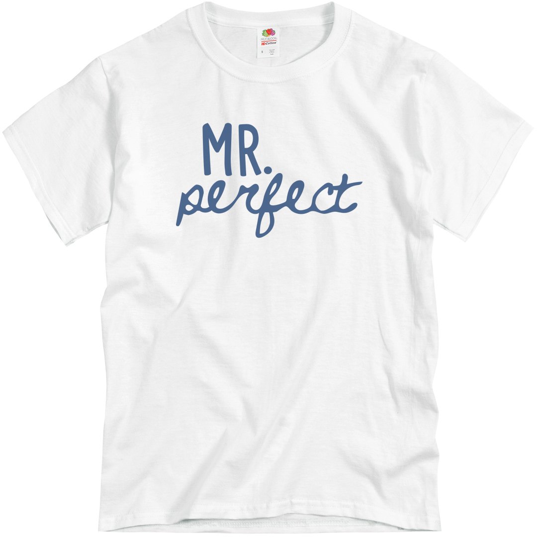 He knows he awesome now he can show it with our unique Mr. Perfect men's basic tee. We also offer a Mrs. Perfect to match with her Mr. Perfect to show they are the perfect couple in love.