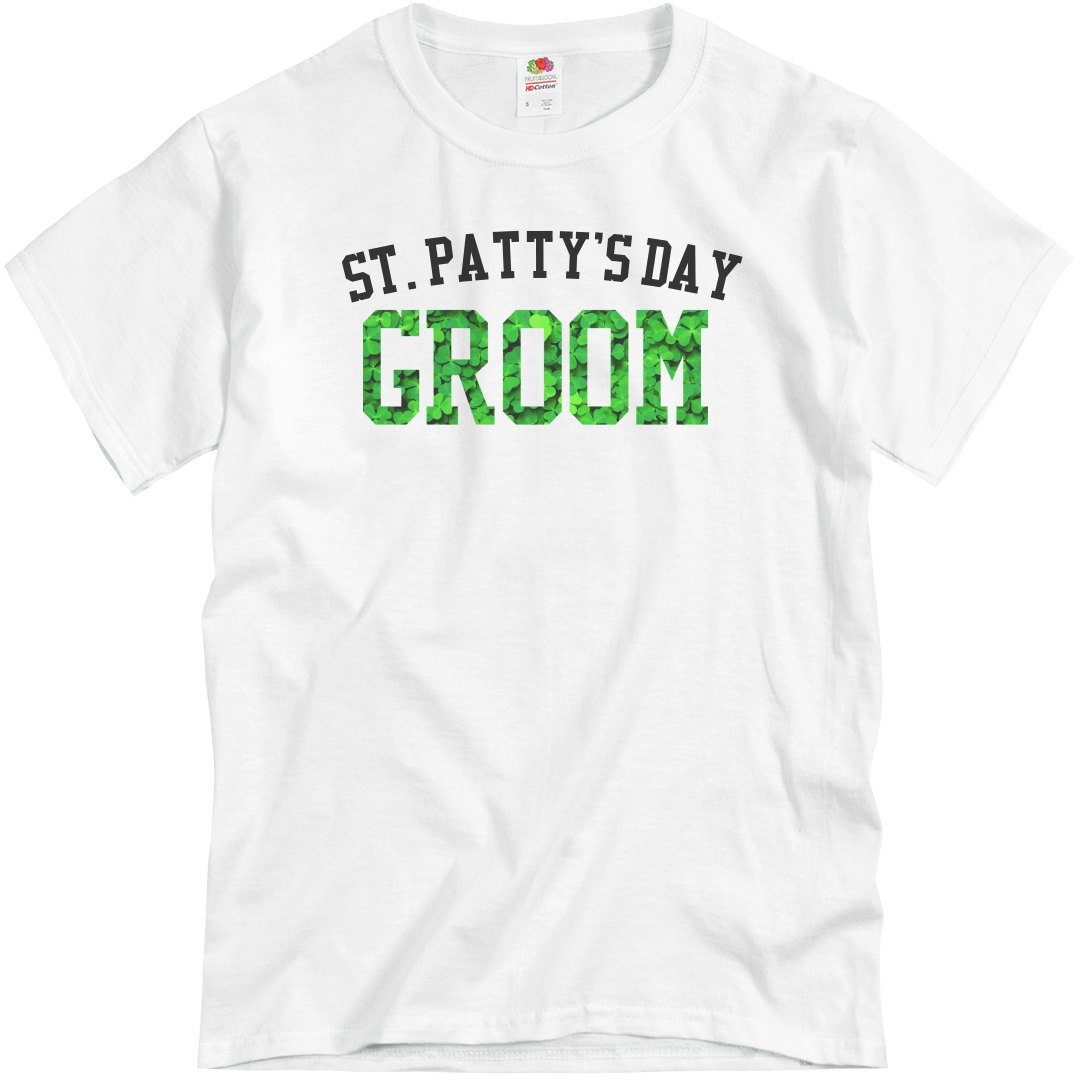 Show off that you were married on St Patrick's Day with our unique St. Patty's Day Groom with green shamrock rocks spelling out Groom men's T-shirt. We also offer this cool design for the whole wedding party