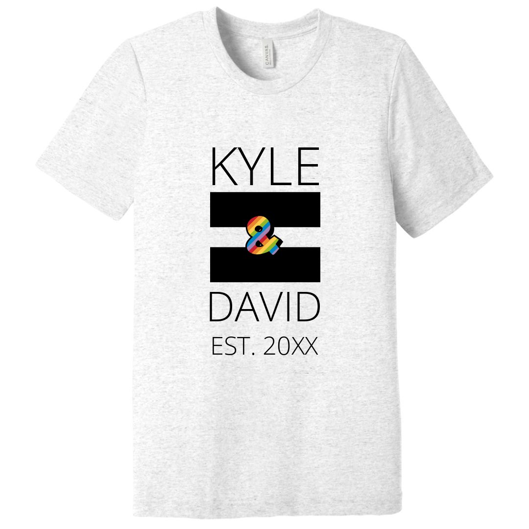 Get matching couples tees for your and your new hubby. This rainbow & sign is great to show marriage equality. Customize this shirt by adding names and the date.
